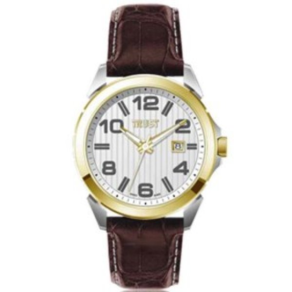 این ساعت تراست محصول کشور سویس است دارای رنگ قهوه ای زیبا و قاب طلایی می باشد از 3 عقربه (ساعت شمار، دقیقه شمار، ثانیه شمار)برای نمایش ساعت استفاده کرده است دارای قابلیت ضد آب نیز هست